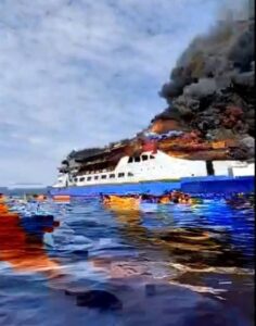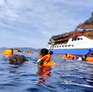 Malut,JendelanewsTV.com – Tragedi memilukan terjadi di perairan Gangga Minahasa Utara (Sulut ) dan Manado, Minggu siang (20/7/2025), ketika Kapal Motor (KM) Barcelona 05 yang tengah mengangkut ratusan penumpang terbakar hebat di tengah laut. Peristiwa mengerikan ini terekam dan viral di berbagai platform media sosial, terutama TikTok dan Facebook, setelah sejumlah penumpang melakukan siaran langsung (live) saat api mulai menjalar di bagian belakang kapal. Dalam kepanikan, ratusan penumpang, termasuk anak-anak dan lansia, terpaksa melompat ke laut demi menyelamatkan diri.