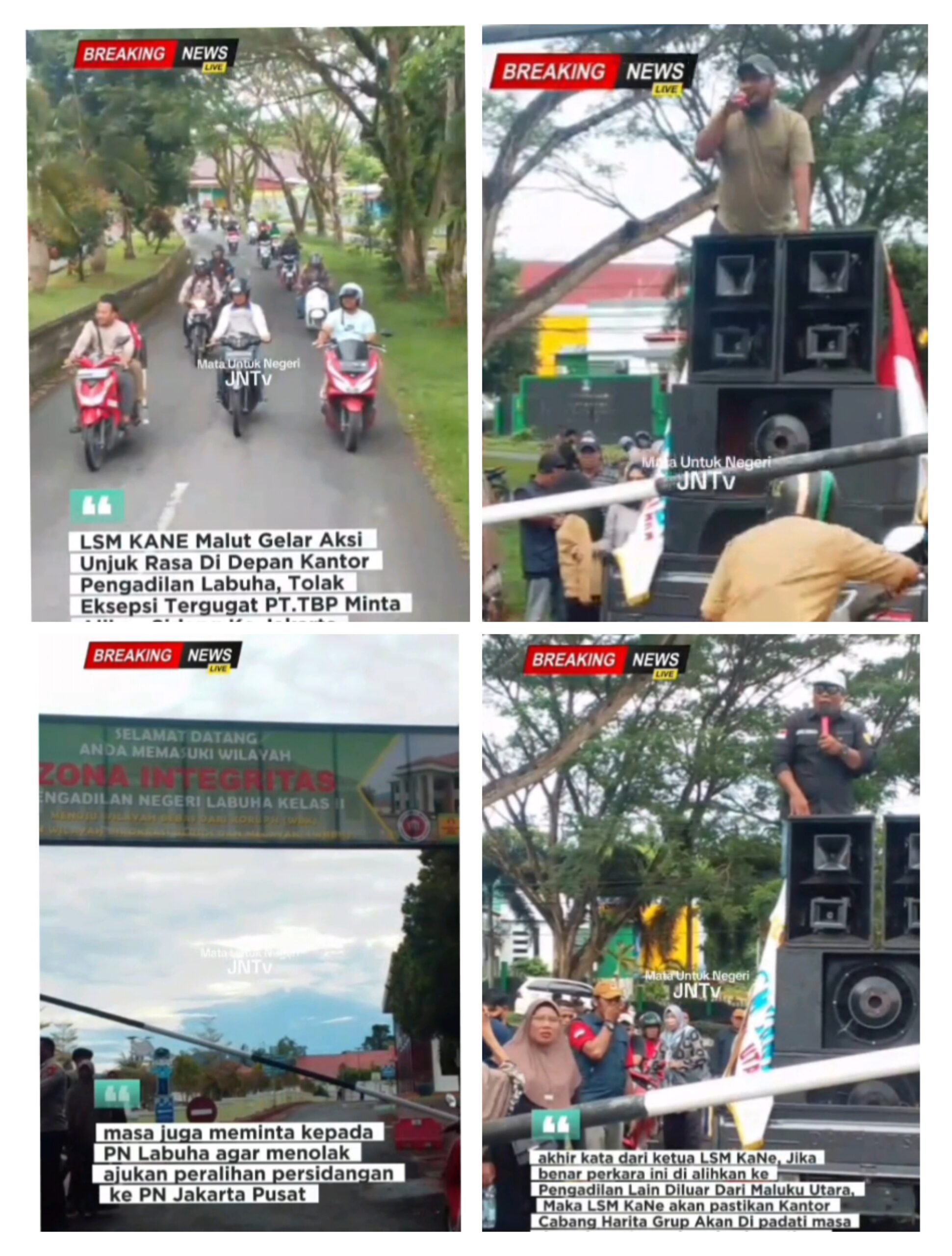 Ketua LSM KaNe Malut, Risal Sangaji, dalam orasinya menyampaikan bahwa permintaan pemindahan lokasi pengadilan ke luar Maluku Utara merupakan bentuk penghindaran tanggung jawab serta mencederai prinsip keadilan lokal bagi masyarakat Halmahera Selatan yang terdampak langsung oleh aktivitas pertambangan Harita Group.