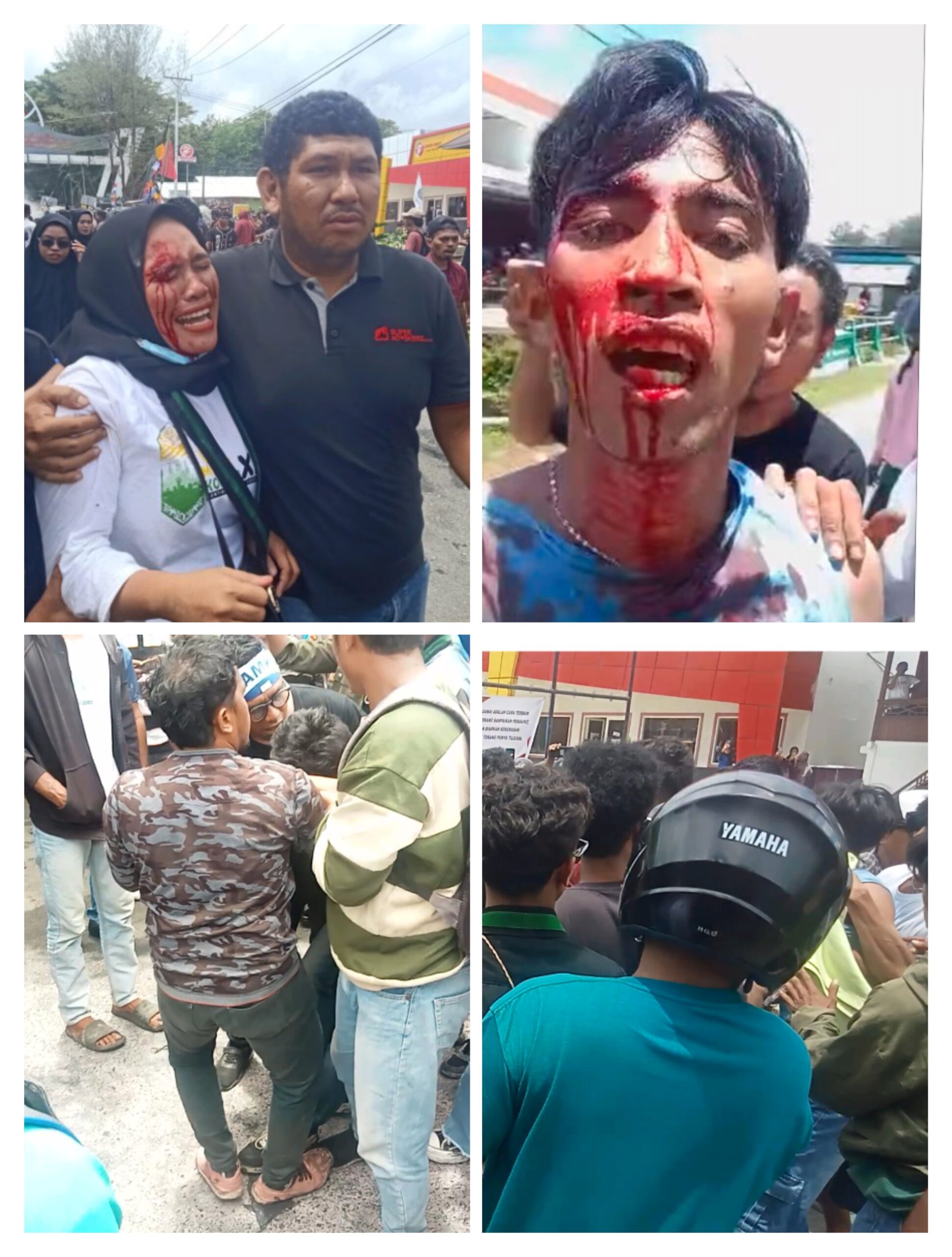 Seorang aktivis yang mengalami luka di kepala langsung dilarikan ke rumah sakit menggunakan kendaraan warga. Darah mengucur deras, sementara kondisi lapangan penuh kepanikan. “Kami hanya ingin menyuarakan kebenaran, tapi justru diperlakukan seperti penjahat,” ungkap salah satu peserta aksi dengan nada geram.
