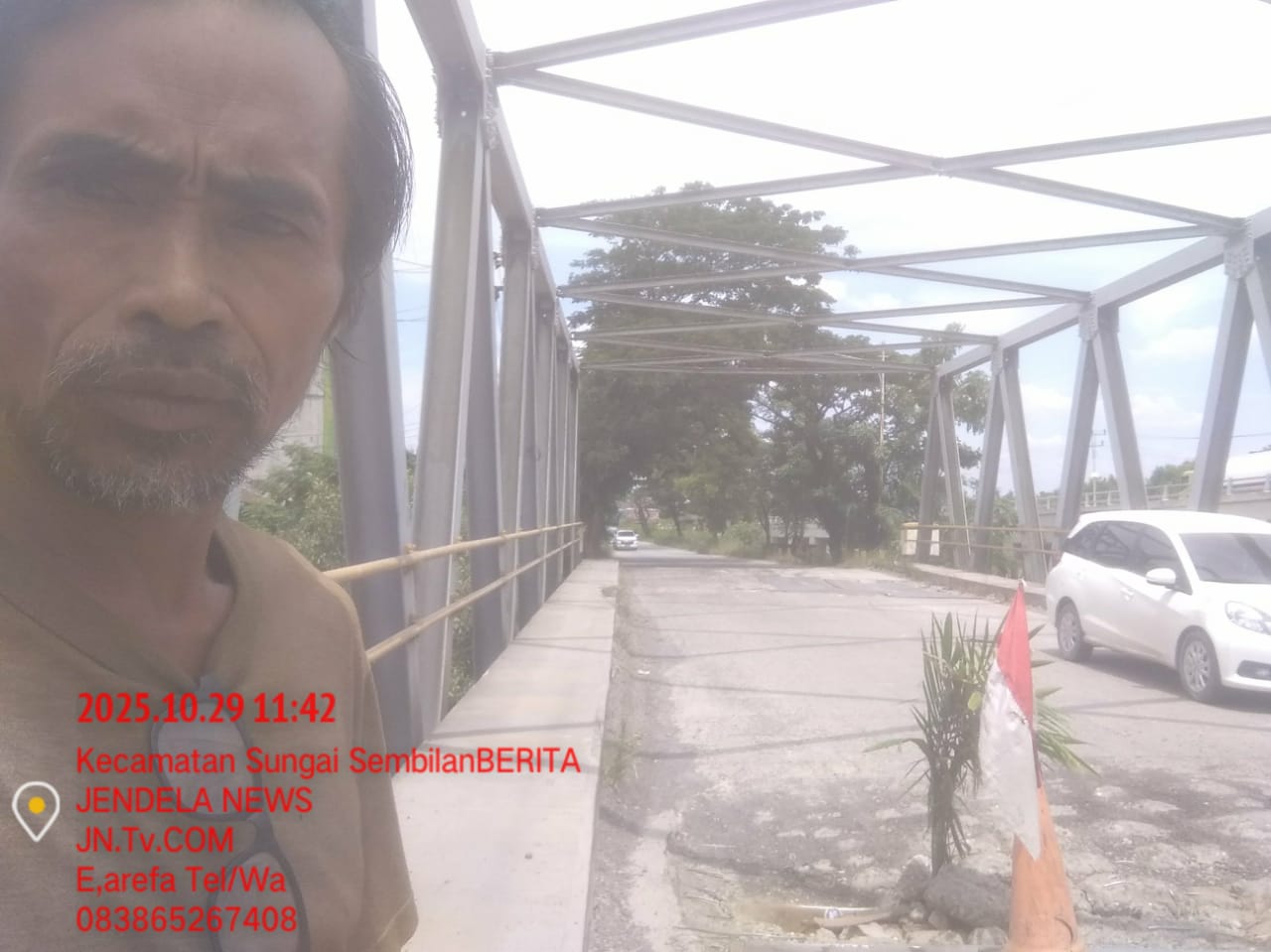 Dumai, Riau – JendelaNewstv.comKabar mengejutkan sekaligus memalukan datang dari Provinsi Riau, tepatnya di Kota Dumai, Kecamatan Sungai Sembilan. Sebuah jembatan yang menjadi akses vital masyarakat dan jalur logistik industri kini menjadi sorotan publik, setelah di tengah badan jembatan tersebut tumbuh sebatang pohon kelapa sawit yang berdampingan dengan bendera merah putih.