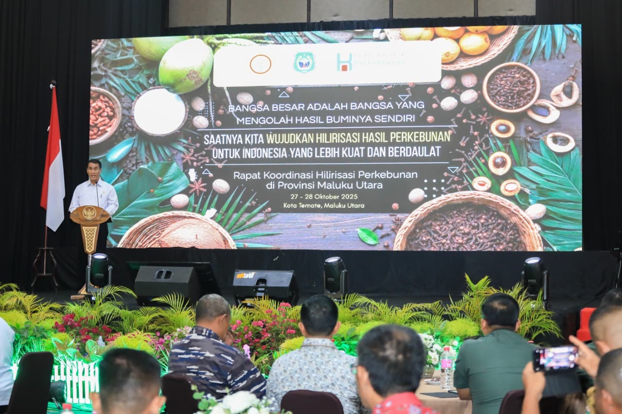 TERNATE, JendelaNewsTv.com — Kepala Kepolisian Daerah (Kapolda) Maluku Utara, Irjen Pol. Drs. Waris Agono, M.Si, menghadiri Rapat Koordinasi bersama Menteri Pertanian Republik Indonesia, Dr. Ir. H. Andi Amran Sulaiman, M.P., yang membahas dukungan terhadap percepatan program hilirisasi sektor perkebunan. Pertemuan tersebut menyoroti pentingnya penguatan rantai nilai serta peningkatan daya saing komoditas unggulan daerah, termasuk peran strategis Maluku Utara dalam sektor pertanian dan perkebunan nasional.