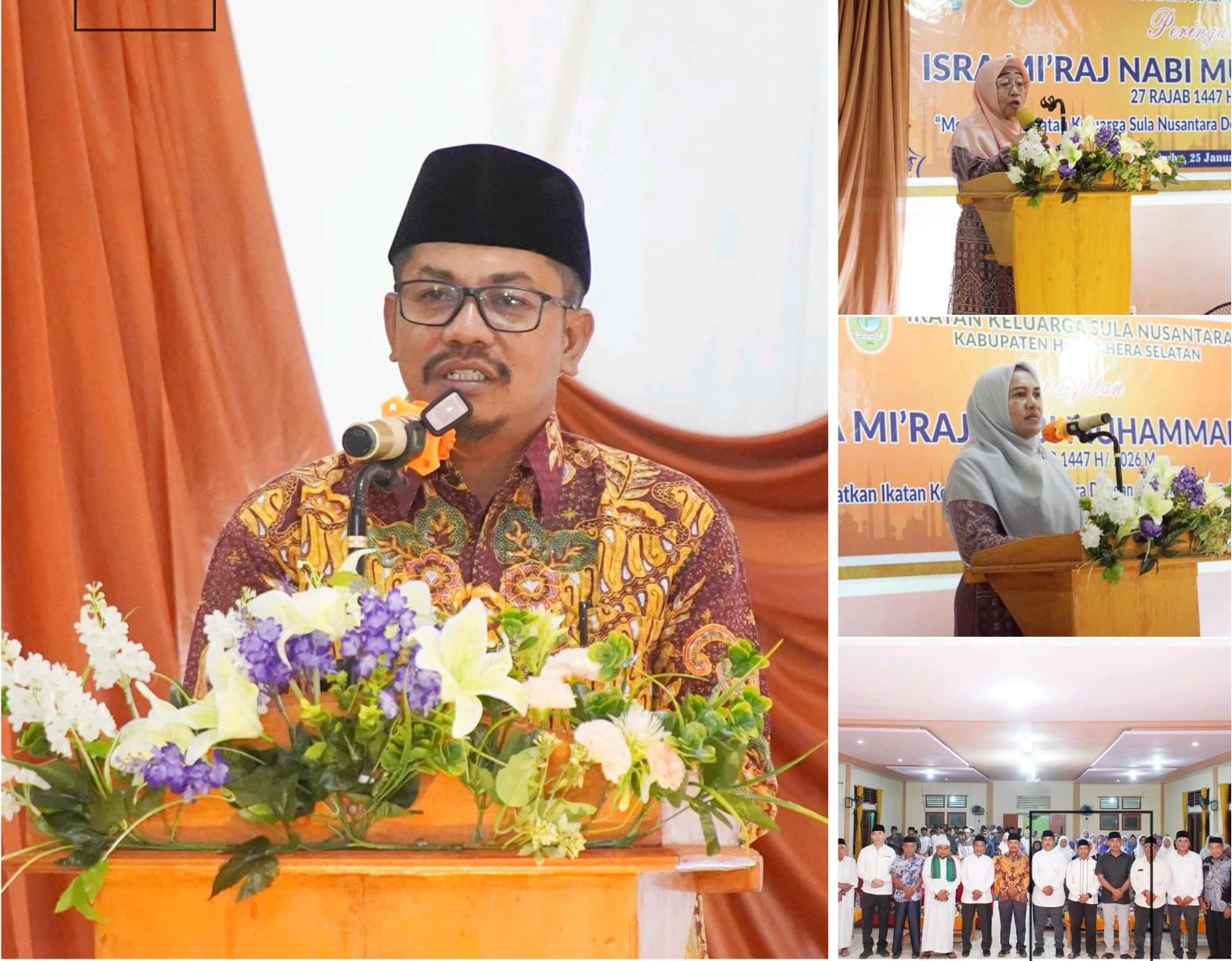 Sementara itu, Sekretaris IKSN Halmahera Selatan, Suhaimi Soamole, S.Ag., M.Pd.I, yang mewakili Ketua IKSN, menyampaikan rasa syukur atas terselenggaranya kembali peringatan Isra Mi’raj tahun ini. Ia menegaskan bahwa tema yang diusung sejalan dengan semangat IKSN untuk terus menjaga kebersamaan dan persatuan keluarga besar Sula Nusantara di Halmahera Selatan.